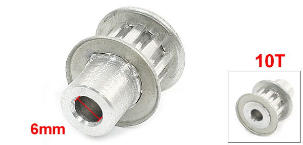 DetailsXL Type Double Flange 1/5" Pitch 10 Tooth Groove Belt Timing Pulley  Product Name Timing Pulley Type XL10 Number of Tooth 10T Pitch 5.08mm/1/5'' Bore Diameter 6mm/0.24" Top Diameter 12mm/0.47" Overall Size 21 x 25mm/0.8'' x1''(D*H) Fit Belt Width 11mm/0.43" Materials Alumnum Color Silver Tone Weight 11g Package Content 1 x Timing Pulley