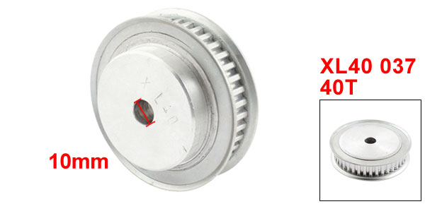 Product Name Timing Pulley Type XL40 037 Tooth Number 40 Pitch 5.08mm / 0.2" Bore Diameter 10mm / 0.4" Teeth Width 11mm/0.43" Fit Belt Width 9.5mm / 0.37" Side Lug Diameter 64mm/2.5" Top Outer Dia 48mm/1.9" Overall Size 26 x 71mm / 1" x 2.8" (H*Max.D) Material Aluminum Alloy Color Silver Tone Weight 203g Package Content 1 x Timing Pulley - Reviews