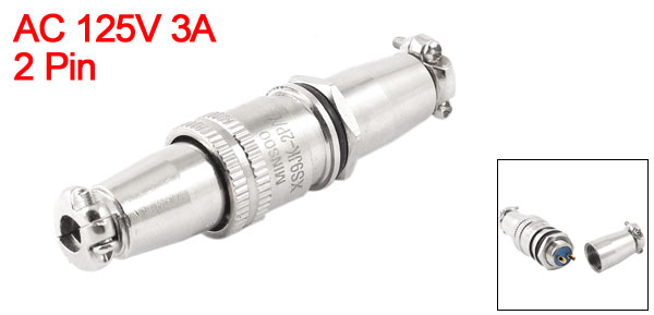 Product Name Aviation Connector Plug Model XS9-2 Rated Voltage AC 125V Rated Current 3A Withstand Voltage AC 1500V Pin Quantity 2 Pin Thread Diameter 9mm/ 0.35" Cable Hole Diameter 4mm/0.16" Total Size 14 x 55mm/ 0.55" x 2.2" (max.D*L) Material Metal Color Silver Tone Weight 20g Package 1 x Aviation Connector Plug - Reviews
