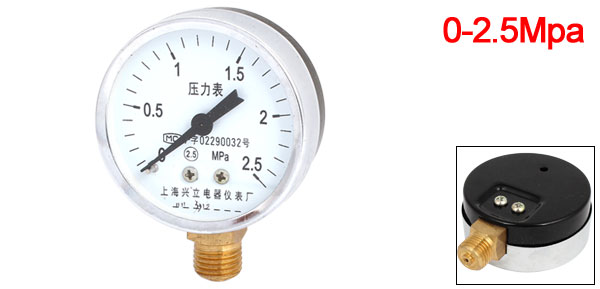 Product Name Pressure Gauge Type Y-60, Lower Mount Scale Range 0-2.5Mpa/25Bar/362PSI Accuracy Class 2.5 Total Size 8.0 x 6.0 x 2.6cm / 3.2" x 2.4" x 1" (L*W*T) Thread Diameter 1/4 NPT/13.6mm Material Metal Net Weight 87g Package Content 1 x Pressure Gauge - Reviews