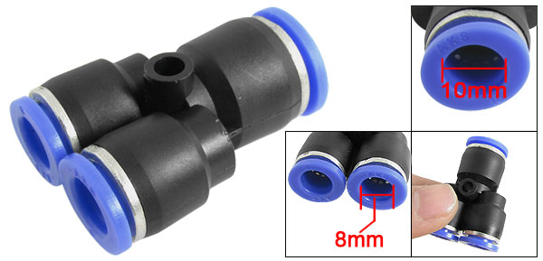 Y Shape Push In to Quick Connect Air Pneumatic Fittings 10mm to 8mm