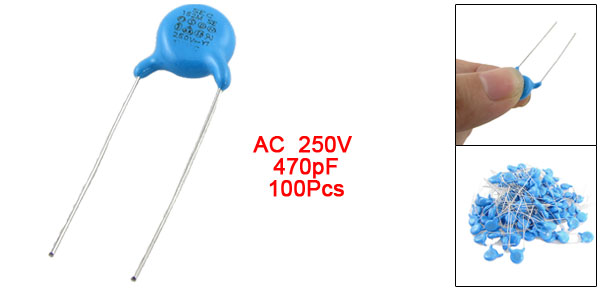 Product Name Safety Ceramic Capacitors Withstand Voltage 4KV Rated Voltage 250V AC Temperature Characteristic Y5P Series Y1 Capacitance 470pF Capacitance Tolerance K(±10%) Lead Spacing 9mm Lead Diameter 0.6mm Total Size 3.2 x 1.1cm / 1.2" x 0.4"(Max. L *W) Weight 71g Main Color As Picture Show Package Content 100 Pcs x Safety Ceramic Capacitors - Reviews