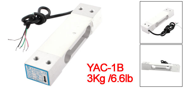 Product Name Load Cell Model YAC-1B Rated Load 3Kg /6.6lb Rated Output 2±0.15mV/V Composition Error ±0.03%RO Input Resistance 402 ± 6Ohm Output Resistance 350± 3 Ohm Insulation Resistance 5000M Ohm(DC 100V) Working Temperature -35°C~+80°C Compensated Temperature Range -10°C~+40°C Safety Overload 150%F.S Excitation Voltage DC 10-15V Total Size 132 x 30 x 22mm /5.2" x 1.2" x 0.87"(L*W*T) Fixing Hole Diameter 5mm / 0.2" Hole Center Distance 106 x 15mm/4" x 0.6"(L*W) Cable Length 430mm/17'' Material Aluminium Alloy Color Silver Tone Weight 163g Package Content 1 x Load Cell - Reviews