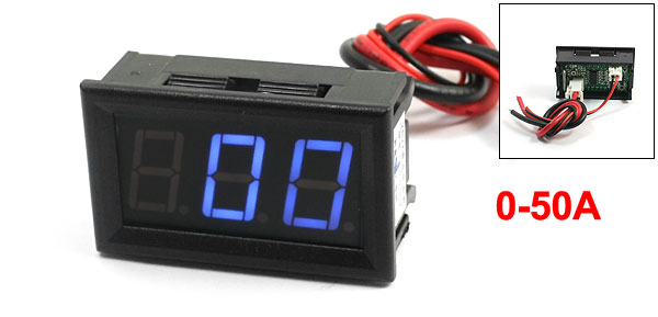 Product Name DC Digital LED Ammeter Model YB27C Power 4.5-30V Measuring Range 0-50A DC Shunt Type 75mV Display 7 Segment 3 Bit Display Color Blue Total Size 48 x 29 x 29mm/1.9" x 1.2" x 1.2"(L*W*T) Panel Size 45 x 27 x 19mm/ 1.5" x 1.2" x 0.75"(L*W*T) Wire Length 14.5cm/ 5.7" Casing Material Plastic, Electric Part Total Weight 30g Net Weight 22g Package Content 1 x DC Digital LED Ammeter
