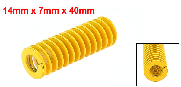 Product Name Die Spring Size 14 x 7 x 40mm/ 0.55" x 0.28" x 1.6"(OD* Inner Dia * L) Materials Chromium Alloy Steel Color Yellow Net Weight 14g Package Content 1 x Die Spring - Reviews