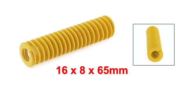 Product Name Die Spring Size 16 x 8 x 65mm/ 0.63" x 0.31" x 2.6"(OD* Inner Dia * L) Materials Chromium Alloy Steel Color Yellow Net Weight 30g Package Content 1 x Die Spring - Reviews