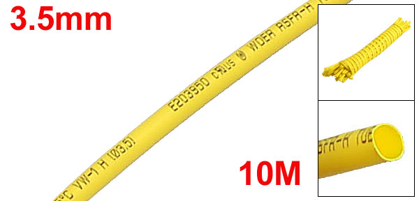 Yellow 32.8Ft 10M Long 3.5mm Dia Polyolefin Heat Shrinkable Tube Tubing