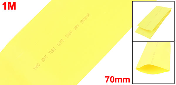 Yellow 70mm Diameter 2:1 Polyolefin Tube Sleeving Heat Shrink Tubing 1M 3.3Ft