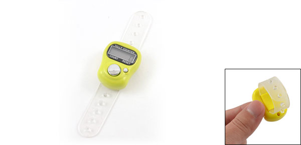 Product Name Finger Counter Material Plastic Case Size 3.6 x 2.8 x 1.7cm/1.4'' x 1.1'' x 0.7''(L*W*H) Band Size 10.8 x 1.5cm/4.3'' x 0.6''(L*W) Power by 1 x L113 Button Cell Fit Finger Girth 5-9cm/2"-3.5" Case Color Yellow Band Color Clear Weight 10g Package Content 1 x Finger Counter - Reviews