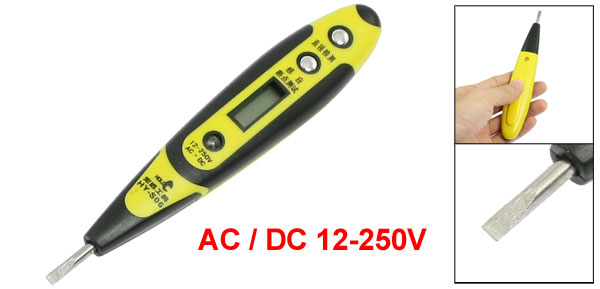 Yellow Black 12-250V Digital LCD Display Voltage Test Pen