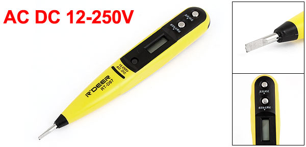 Product Name Digital Voltage Tester Material Plastic, Metal Voltage AC/ DC 12-250V Tip Size (Approx.) 4mm/ 0.16" Total Size (Approx.) 16 x 2.5 x 1.5cm/ 6.3" x 1.0" x 0.6"(L*W*T) Handle Color Yellow, Black Net Weight 28g Package Content 1 x Digital Voltage Tester - Reviews