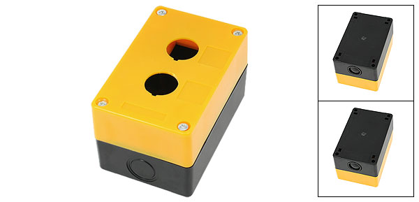Product Name Control Box Material Plastic Color Yellow, Black Location Switch Number 2 Box Total Size 108 x 70 x 64mm/4.3" x 2.8" x 2.5"(L*W*H) Mounted Hole Size 80 x 54mm/3.1" x 2.1"(L*W) Fit for Round Switch Head Diameter 22mm/ 0.9" Net Weight 118g Package Content 1 x Control Box