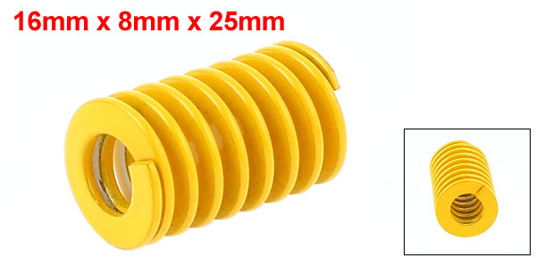 Product Name Die Spring Size 16 x 8 x 25mm/ 0.63" x 0.31" x 1"(OD* Inner Dia * L) Materials Chromium Alloy Steel Color Yellow Net Weight 13g Package Content 1 x Die Spring - Reviews
