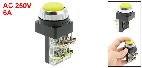 Product Name Push Button Switch Contact Type 1NO, 1NC Working Voltage & Electricity AC 250V, 6A Max Voltage 600V Terminal Quantity 4 Panel Cutout Diameter 29mm / 1.14" Fit Panel Max. Thickness 6mm / 0.24" Total Size(Approx) 7 x 3.5 x 4.5cm / 2.76" x 1.4" x 1.8" (L*W*H) External Material Plastic, Electric Parts Color Black, Yellow Net Weight 53g Package Content 1 x Push Button Switch - Reviews