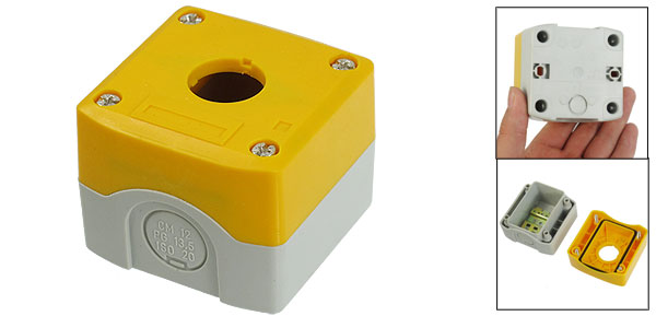 Product Name Control Box Material Plastic Color Yellow, Gray Location Switch Number 1 Box Total Size 68 x 68 x 54mm/2.7" x 2.7" x 2.1"(L*W*H) Fit for Round Switch Head Diameter 22mm/ 0.9" Net Weight 92g Package Content 1 x Control Box