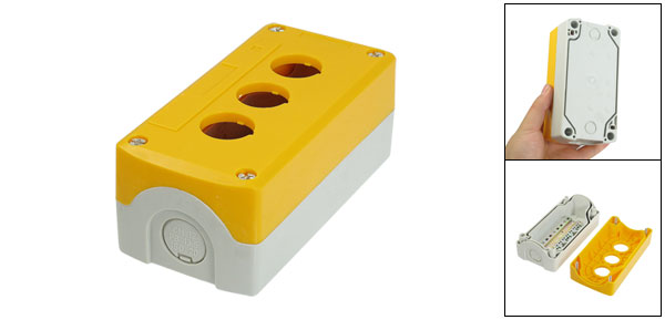 Yellow Gray Plastic 22mm Dia 3-Hole Push Button Switch Control Station Box
