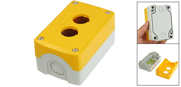 Product Name Control Box Material Plastic Color Yellow, Gray Location Switch Number 2 Box Total Size 106 x 68 x 54mm/4.2" x 2.7" x 2.1"(L*W*H) Fit for Round Switch Head Diameter 22mm/ 0.9" Net Weight 126g Package Content 1 x Control Box