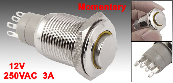 Item Name Stainless Push Button Switch Operation Type Momentary LED Type Ring-illuminated LED Contact 1NO 1NC Head Design High Flat Head Switch Rating 250VAC, 3A Lamp Voltage 12V Operation Pressure 2.5-4N LED Color Yellow Pin Number 5 Thread Diameter 16mm/0.63'' Total Size 38 x 22mm/1.5'' x 0.9''(L*Max.W) Material Stainless , Electric Parts Housing Color Silver Tone Net Weight 13g Package Content 1 x Stainless Push Button Switch - Reviews