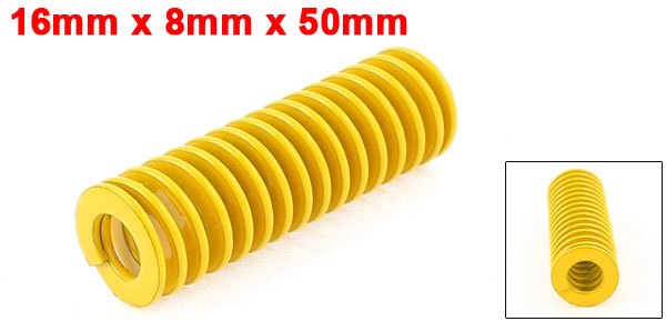 Product Name Die Spring Load Type Light Load Color Yellow Rod Diameter 8mm/0.31" Hole Diameter 16mm/0.63" Free Length 50mm/1.97" Material Alloy Steel Weight 25g Package Content 1 x Die Spring - Reviews