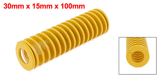 Product Name Die Spring Load Type Light Load Color Yellow Rod Diameter 15mm/0.59" Hole Diameter 30mm/1.18" Free Length 100mm/3.94" Material Alloy Steel Weight 125g Package Content 1 x Die Spring - Reviews