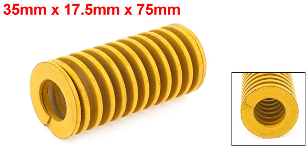 Product Name Die Spring Load Type Light Load Color Yellow Rod Diameter 17.5mm/0.69" Hole Diameter 35mm/1.38" Free Length 75mm/2.95" Material Alloy Steel Weight 25g Package Content 1 x Die Spring - Reviews