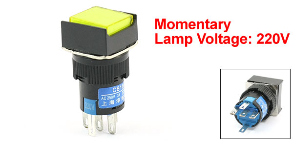 Yellow Pilot Lamp SPDT Momentary Square Flat Head 5P Pushbutton Switch