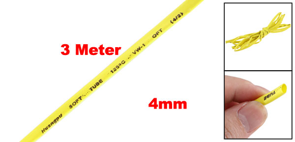 Yellow Ratio 2:1 Polyolefin 4mm Dia Heat Shrink Shrinkable Tube 3 Meter
