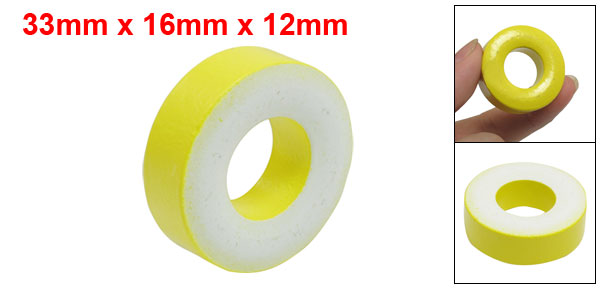 Product Name Ferrite Ring Model AT131-26 Size 33 x 16 x 12mm/1.3" x 0.6" x 0.47"(D.outter*D.inner*T) Material Ferrite Color Yellow, White Net Weight 50g Package Content 1 x Ferrite Ring - Reviews