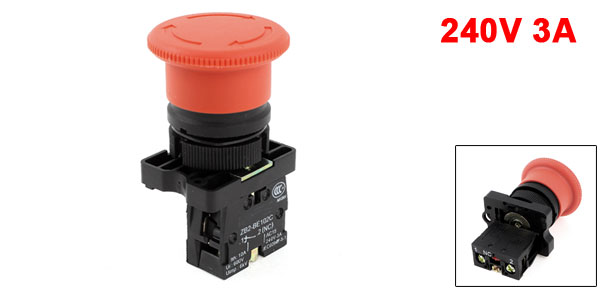 Product Name Emergency Stop Push Button Switch Model ZB2-BE102C Switch Type NC, SPST, Latching Rated Load 240V 3A Ui 600V Ith 10A Uimp 6KV Size 4 x 7cm / 1.6" x 2.7"(D*H) Color Red, Black Weight 52g Package Content 1 x Emergency Stop Push Button Switch - Reviews
