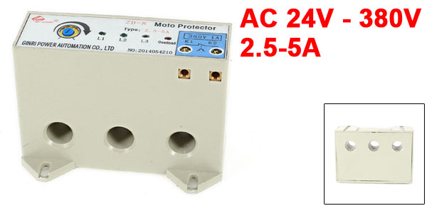 Product Name Motor Protector Type ZD-8 Reset Time 60 ± 10s Work Mode Uninterrupted Work Mode Applicable Voltage AC 24V - 380V / 45 ~ 60 Hz Current Adjustment Scope 2.5-5A Applicable Motor Power 1.5 - 2.5KW Wire Hole Dia. 11mm/0.43" Control Current of Output Interface 1A/380Vac Environment Temperature -10C - +50C Relative Humidity <=90% Atmospheric Pressure 80Kpa~110Kpa Altitude no more than 200m Total Size 9.2 x 6.3 x 4.2cm/3.6" x 2.5" x 1.7"(L*W*H) Weight 168g Package Content 1 x Motor Protector