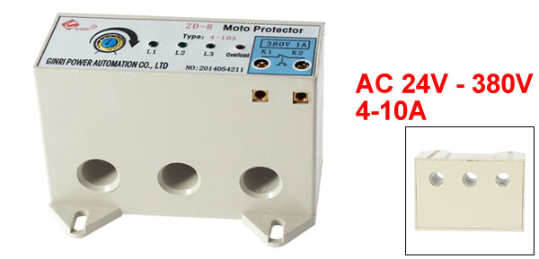 Product Name Motor Protector Type ZD-8 Reset Time 60 ± 10s Work Mode Uninterrupted Work Mode Applicable Voltage AC 24V - 380V / 45 ~ 60 Hz Current Adjustment Scope 4-10A Applicable Motor Power 2 - 5KW Wire Hole Dia. 11mm/0.43" Control Current of Output Interface 1A/380Vac Environment Temperature -10C - +50C Relative Humidity <=90% Atmospheric Pressure 80Kpa~110Kpa Altitude no more than 200m Total Size 9.2 x 6.3 x 4.2cm/3.6" x 2.5" x 1.7"(L*W*H) Weight 164g Package Content 1 x Motor Protector