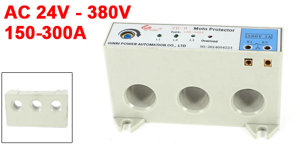 Product Name Motor Protector Type ZD-9 Reset Time 60 ± 10s Work Mode Uninterrupted Work Mode Applicable Voltage AC 24V - 380V / 45 ~ 60 Hz Current Adjustment Scope 150-300A Applicable Motor Power 32 - 80KW Wire Hole Dia. 20mm/0.79" Control Current of Output Interface 1A/380Vac Environment Temperature -10C - +50C Relative Humidity <=90% Atmospheric Pressure 80Kpa-110Kpa Altitude no more than 200m Total Size 12.4 x 6.8 x 4.4cm/4.9" x 2.7 " x 1.7"(L*W*H) Weight 209g Package Content 1 x Motor Protector