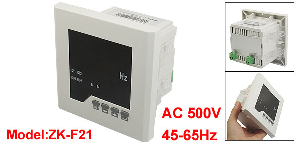 Product Name Frequency Meter Model ZK-F21 Accuracy ± (0.5%+1) Voltage Testing AC 500V, 45-65Hz Auxiliary Voltage AC 220V±10% Working Temperature 0 ~ +50 Celsius Degree Total Size 120 x 120 x 95mm/4.7'' x 4.7'' x 3.7'' (L*W*H) Panel Cutout Size 87 x 87mm/3.4'' x 3.4'' (L*W) Material Plastic Color White Net Weight 274g Package Content 1 x Digital Frequency Meter