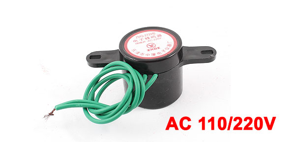 Product Name Electronic Buzzer Model No. ZMQ-2729 Sound-making Type Continuous Sound Rated Voltage AC 110/220V Sound Pressure more than 80dB Operating Temperature -20°C to +45°C Body Diameter 30mm / 1.2" Overall Size 61 x 30 x 28.5mm / 2.4" x 1.2" x 1.1"(L*W*H) Mounting Hole Diameter 3.5mm / 0.138" Wire Length 20cm / 7.9" External Material Plastic Color Black, Green Weight 16g Package Content 1 x Electronic Buzzer