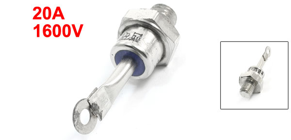 Product Name Phase Control Thyristor Model ZP20A Average Forward Current 20A Repetitive Peak Reverse Voltage 1600V Thread Dia(Approx) 9mm / 0.35" Overall Size(Approx) 55 x 18 x 20mm /2.2" x 0.71" x 0.8"(L*W*H) Hole Dia 4.4mm/0.17" Material Metal Color Silver Tone Weight 20g Package Content 1 x Phase Control Thyristor - Reviews