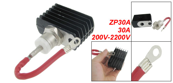 Product Name Rectifier Diode Model No. ZP30A Average Forward Current 30A Repetitive Peak Reverse Voltage(VRRM) 200V-2200V Heatsink Size 73 x 31 x 43mm / 2.9" x 1.2" x 1.7"(L*W*H) Stud Hole Diameter 6.4mm / 0.25" Hex Head Diameter 31.4mm / 1.2" Stud Hole to Hex Head Length 172mm / 6.77" Material Metal, Ceramic, Aluminum Weight 155g Package Content 1 x Rectifier Diode - Reviews