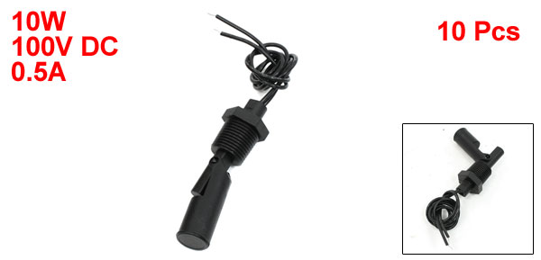Product Name Floating Switch Model No. ZPC6 Max Contact Rating 10W Max Switching Voltage 100V DC Max Switching Current 0.5A Max Breakdown Voltage 220V DC Max Carry Current 1A Max Contact Resistance 100mΩ Temperature Rating -10 / +85 °C Material Plastic, PP Thread Dia(Approx) 20mm / 0.79" Thread Length 18mm / 0.7" Switch Total Length 90mm / 3.5" Cable Length 34cm / 13.4" Color Black Net Weight 218g Package Content 10 x Floating Switch - Reviews