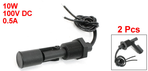 DetailsZPC6 Liquid Water Level Sensor Horizontal Mounting Floating Switch x 2  Product Name Floating Switch Model No. ZPC6 Max Contact Rating 10W Max Switching Voltage 100V DC Max Switching Current 0.5A Max Breakdown Voltage 220V DC Max Carry Current 1A Max Contact Resistance 100mΩ Temperature Rating -10 / +85 °C Material Plastic, PP Thread Dia(Approx) 20mm / 0.79" Thread Length 18mm / 0.7" Switch Total Length 90mm / 3.5" Cable Length 34cm / 13.4" Color Black Net Weight 46g Package Content 2 x Floating Switch
