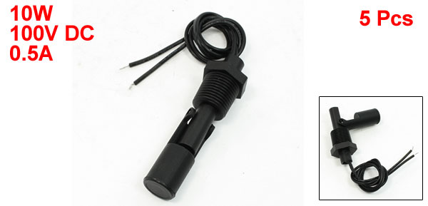 Product Name Floating Switch Model No. ZPC6 Max Contact Rating 10W Max Switching Voltage 100V DC Max Switching Current 0.5A Max Breakdown Voltage 220V DC Max Carry Current 1A Max Contact Resistance 100mΩ Temperature Rating -10 / +85 °C Material Plastic, PP Thread Dia(Approx) 20mm / 0.79" Thread Length 18mm / 0.7" Switch Total Length 90mm / 3.5" Cable Length 34cm / 13.4" Color Black Net Weight 110g Package Content 5 x Floating Switch - Reviews