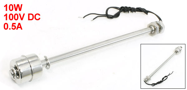 Product Name Floating Switch Model No. ZS20010 Max Contact Rating 10W Max Switching Voltage 100V DC Max Switching Current 0.5A Max Breakdown Voltage 220V DC Max Carry Current 1A Max Contact Resistance 100mΩ Max Temperature -30°C - +120°C Material Stainless Steel, SUS304 Thread Dia(Approx) 10mm / 0.39" Thread Length 15mm / 0.59" Switch Length (Thread Length Excluded) 200mm / 7.9" Cable Length 34cm / 13.4" Color Silver Tone Net Weight 62g Package Content 1 x Floating Switch - Reviews