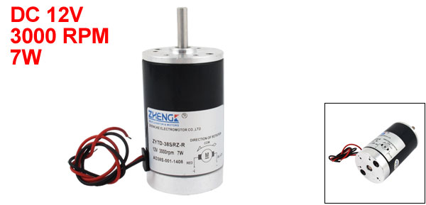 Main Color Black, Red, Silver Gray Brand DMiotech Country of Manufacture CHINA Model ZYTD-38SRZ-R Power 7W Material Metal, Plastic Shaft Size 5 x 18mm / 0.2" x 0.7" (D*L) Wire Length 22cm / 8.66" No-load Speed 3000 RPM Net Weight 270g Rated Voltage DC 12V Package Content 1 x DC Motor Main Body Size 63 x 38mm / 2.5" x 1.5" (L*D) - Reviews