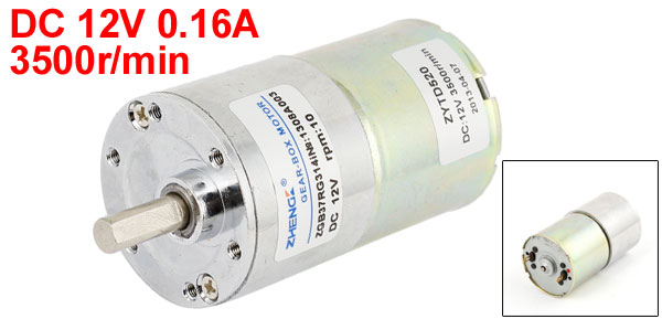 Product Name DC Geared Motor Model ZYTD520 No Load Speed 10 RPM Voltage DC 12V Motor Rated Speed 3500r/min No Load Current 0.16A Torque 7.18kg.cm Gearbox Size 29.5 x 37mm/1.2" x 1.5"(L*D) Mounting Screw Hole Diameter 3mm/0.12" Shaft Size 16 x 6mm/ 0.63" x 0.24"(L*Dia) Motor Part Size 3 x 37mm/ 1.2" x 1.5"(L*D) Main Color Silver Tone, Brass Tone Material Metal Weight 203g Package 1 x DC Geared Motor  - Reviews