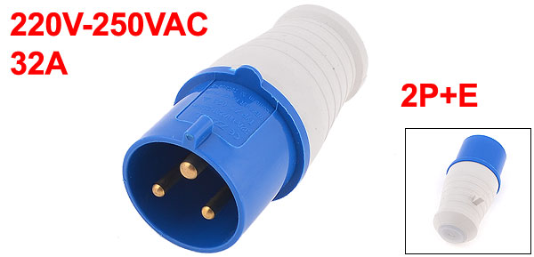 Product Name Industrial Plug Model ZZ-023 Pole Number 2P+E Earth Contact Position Model 6h Voltage 220V-250VAC Current 32A Wirable Hole Diameter 7mm/0.28" Mounting Hole Size 8 x 5.5mm/0.31" x 0.22"(L*W) Mounting Hole Spacing 5.2 x 2.5cm/ 2" x 1"(L*W) Total Size 7.9 x 7.1 x 13.5cm/3.1" x 2.8" x 5.3"(L*W*H) External Material Plastic Color White,Blue Net Weight 190g Package Content 1 x Industrial Plug - Reviews